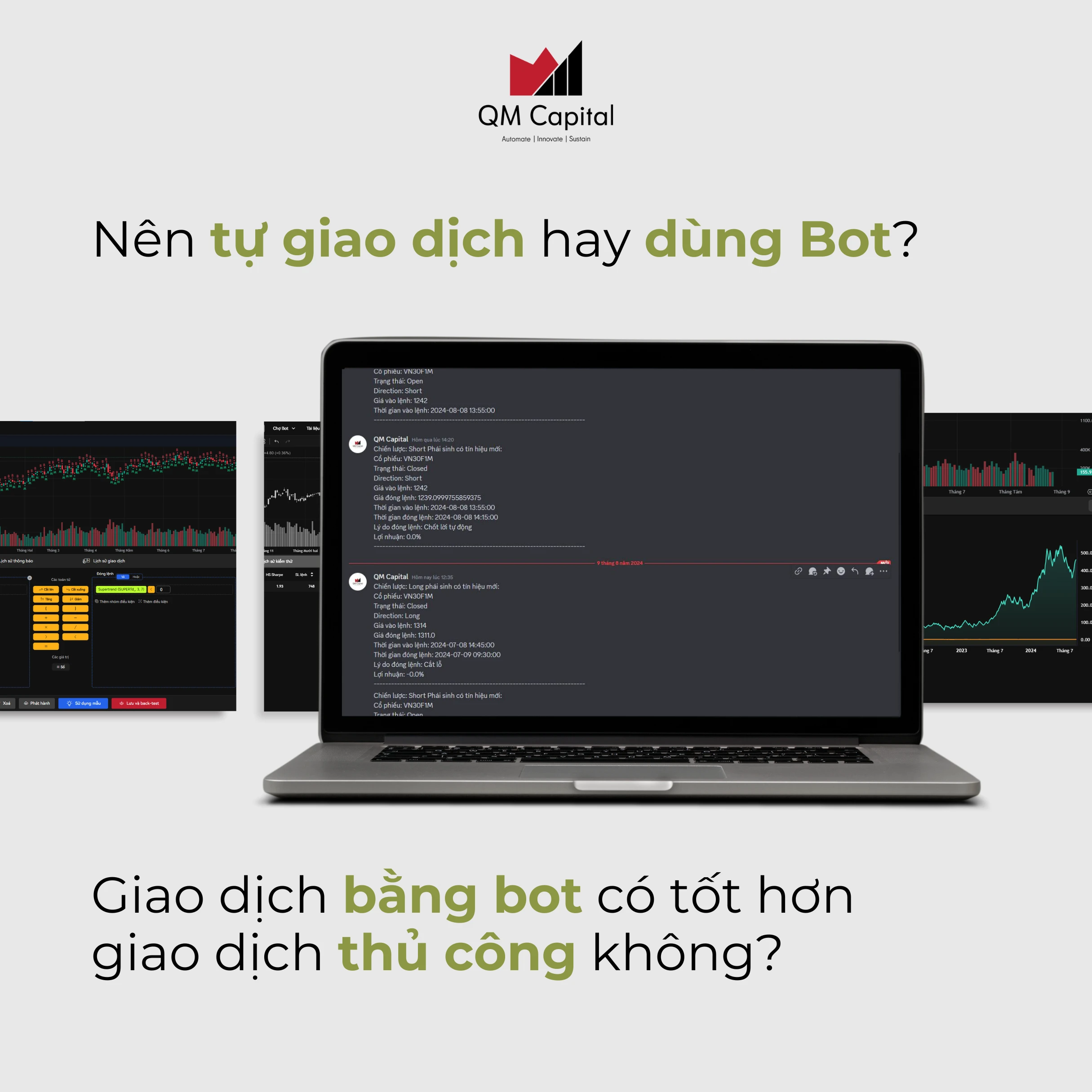 Giữa cuộc tranh luận giữa các chiến lược giao dịch tự động và thủ công gây ra nhiều cuộc thảo luận giữa các nhà đầu tư. Khi công nghệ ngày càng phát triển, nhiều người tự hỏi: Liệu giao dịch bằng Bot có tốt hơn giao dịch thủ công hay không? Trong bài viết này QM Capital sẽ so sánh khách quan cả 2 phương pháp và nêu bật điểm mạnh, điểm yếu của chúng. Cũng qua đây, nhà đầu tư có thể đưa ra quyết định sáng suốt về phương pháp nào phù hợp nhất với khả năng chịu rủi ro, bộ kỹ năng và mục tiêu giao dịch của bản thân.